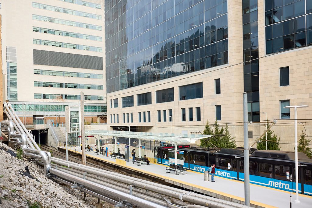 This redesign of our busiest MetroLink Station began in December 2019 and was funded by Washington University and BJC HealthCare, in collaboration with Metro Transit. The CWE improvement project provides new amenities that help relieve pedestrian congestion, improve safety and visibility, and deliver a more comfortable and convenient experience for riders. The enhancements benefit employees, students, patients and visitors to Washington University School of Medicine, BJC HealthCare facilities and other destinations in the Central West End.