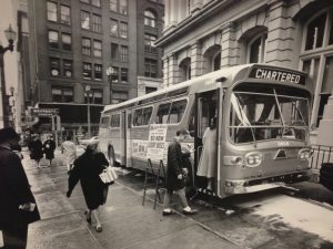 On March 12, 1964, Bi-State Development Agency arranged press showings of its 50 newly purchased air conditioned buses. The new additions to the fleet were supplied by General Motors (40) and Flexible Company (10).